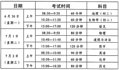 中考:6月30日-7月2日