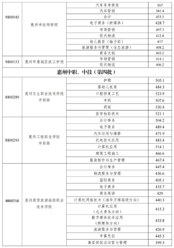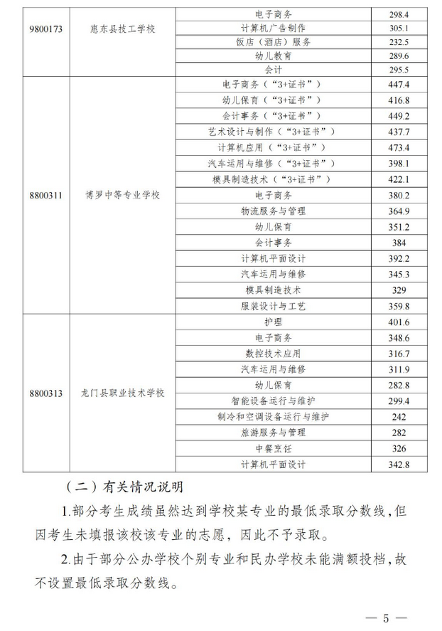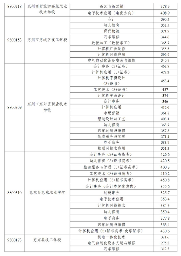 惠州市 2023 年中職(技工)院校統(tǒng)一招生錄取分?jǐn)?shù)線的公告